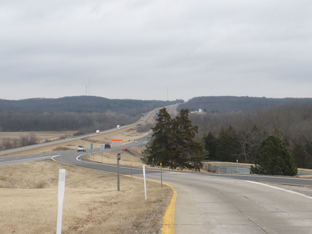 After lunch in St. Louis we hit the road with me behind the wheel again.  Everything was going splendidly: birds were singing, the car was handling well, and Huey, Dewey, and Louie were all sleeping peacefully.  Well, that didn’t last long.  It started raining in freezing temperatures and the Interstate turned into an ice rink.  It took me about a hundred yards to come to a stop when traffic in front of me stopped due to a car going into the ditch.  Within the same half mile stretch two others also went off the road, but we fortunately kept our tires on the road.