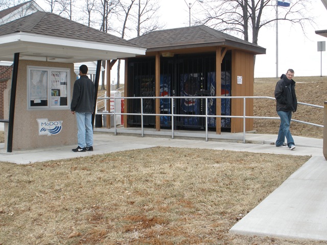 Well, Matt made the right decision to relinquish his crown as driver; he was just too tired and the vehicle on the road was starting to behave eerily similar to a game of pong.  We pulled into this lovely rest area in Danville to make the swap.