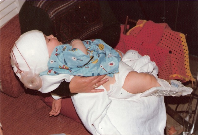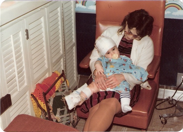 My Mom has told me that after the surgery she was too afraid to hold me for fear of hurting me so my Aunt Sheryl, a nurse, held me first in the photo above.